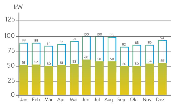 Weil das Speichersystem auch geladen werden muss, braucht es eine minimal realisierbare Lastspitze. Optisizer ermittelt diese und das dazu passende Speichersystem. Ausserdem zeigen wir Ihnen auf, um welche Leistung die Spitze mit kleineren Systemen gebrochen werden kann und welche Ersparnis sich daraus ergibt. Die Berechnung erfolgt völlig produkteunabhängig.